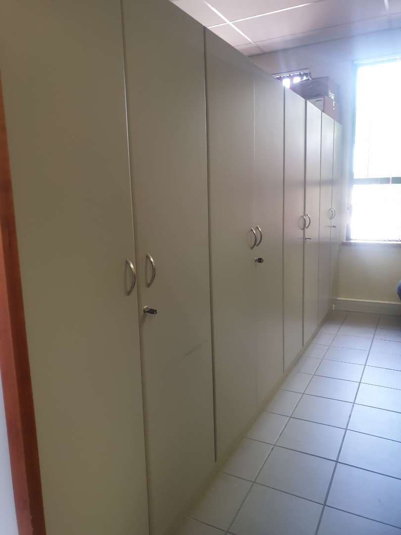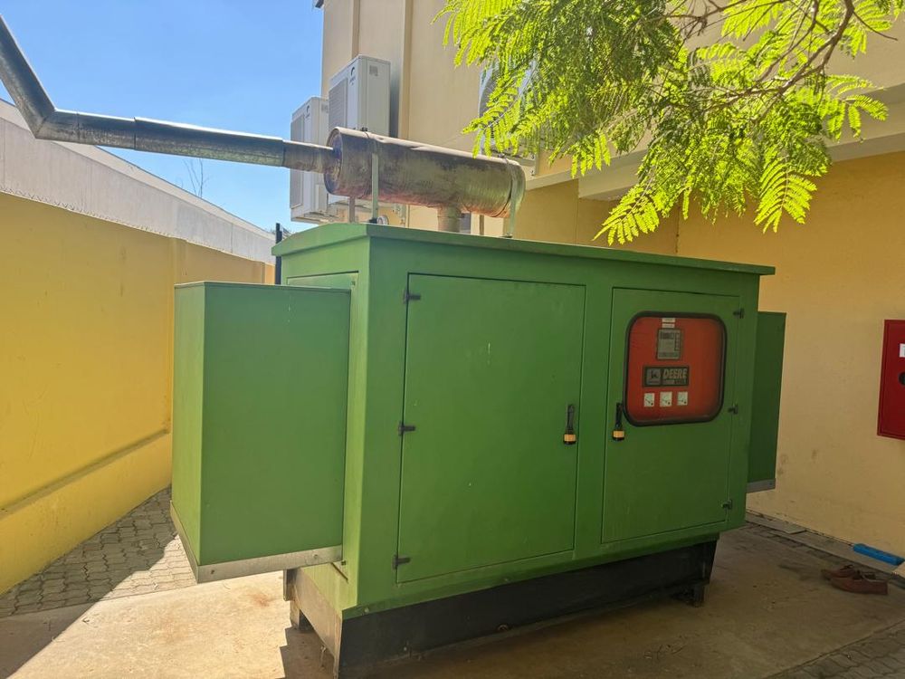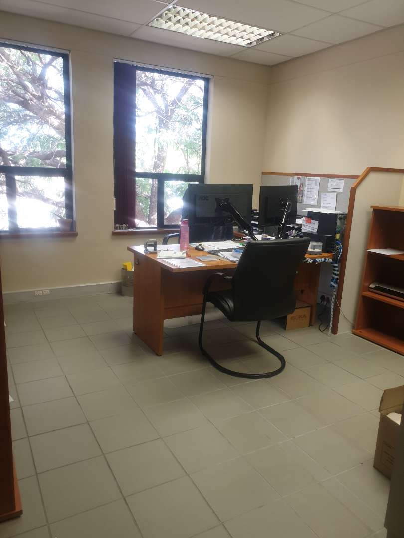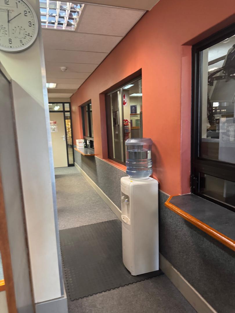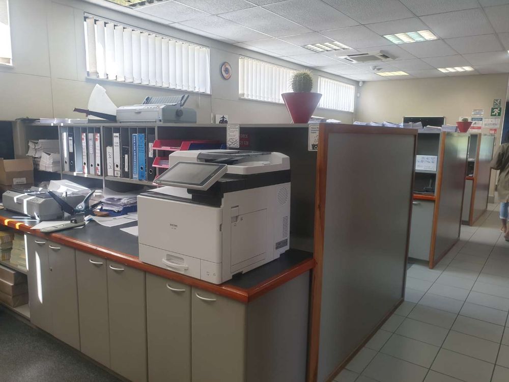 The double-storey building has plastered- and painted brick walls, filled in with aluminium window- and doors frames, under an iron roof and with suspended ceilings. The floors of the offices are tiled. The building is equipped with air-conditioners. The necessary security measures are in place and solar power panels have been installed. The building includes the following: