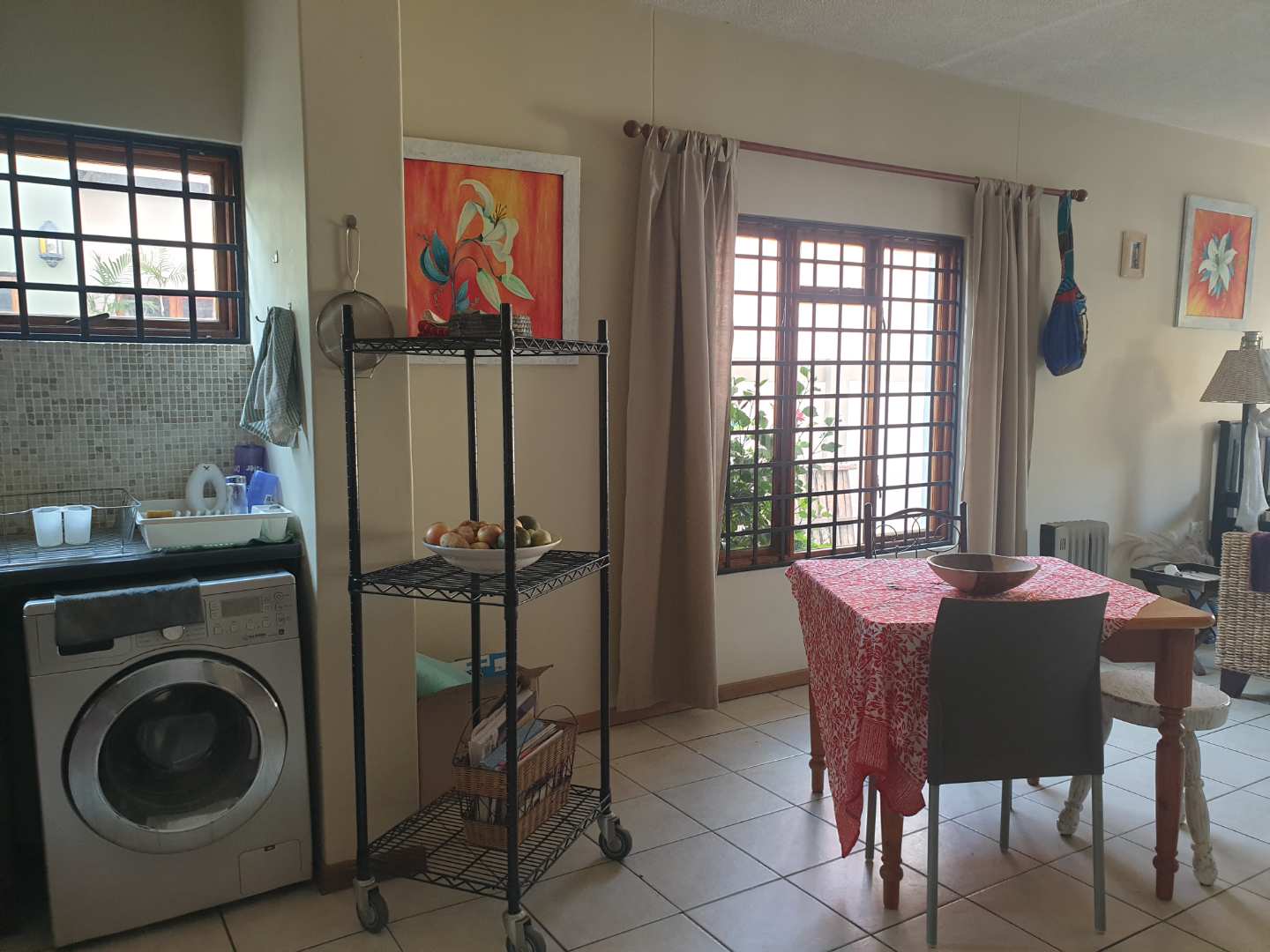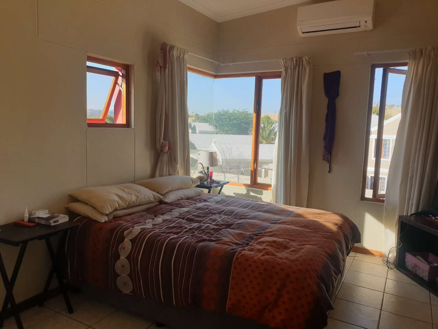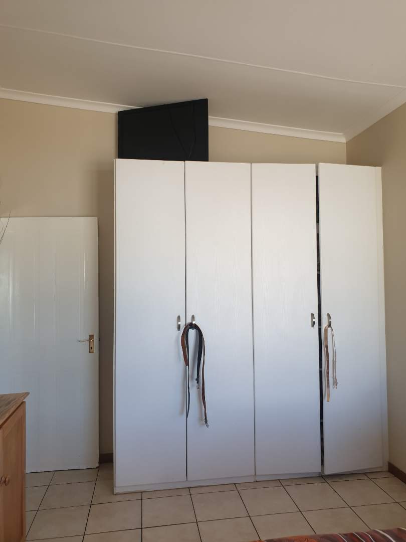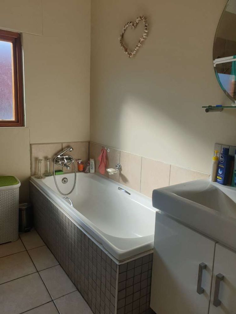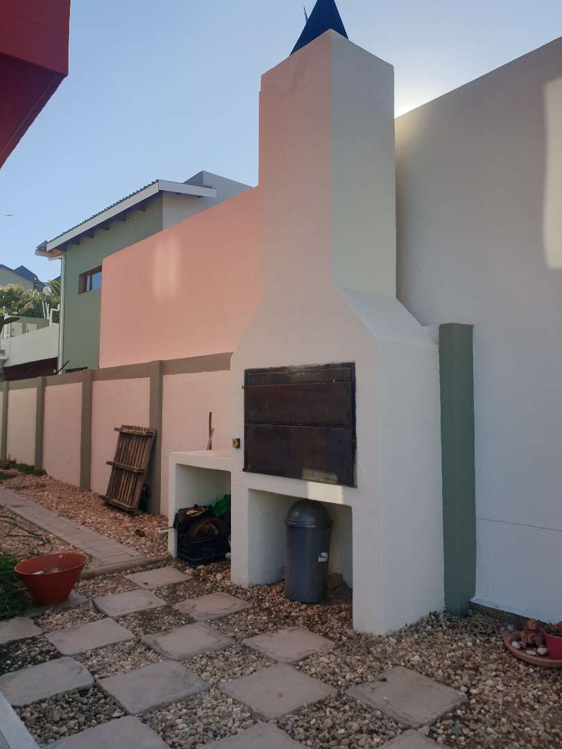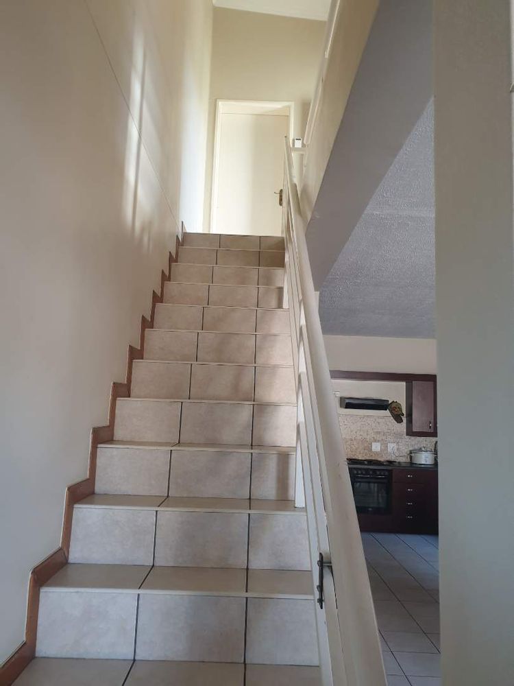 Sgl garage (extra length and height) 1 x covered parking, electrical gate motor, shared bathroom with separate toilet, 2 x bedrooms (BIC) STUNNING VIEW (corner glass). Downstairs: Spacious kitchen with BIC, open plan with ample space for dining and lounge. Build in cast iron fireplace. Spacious garden with braai area. Very Quiet. N$ 1 700 000.00 (2022 valuation)