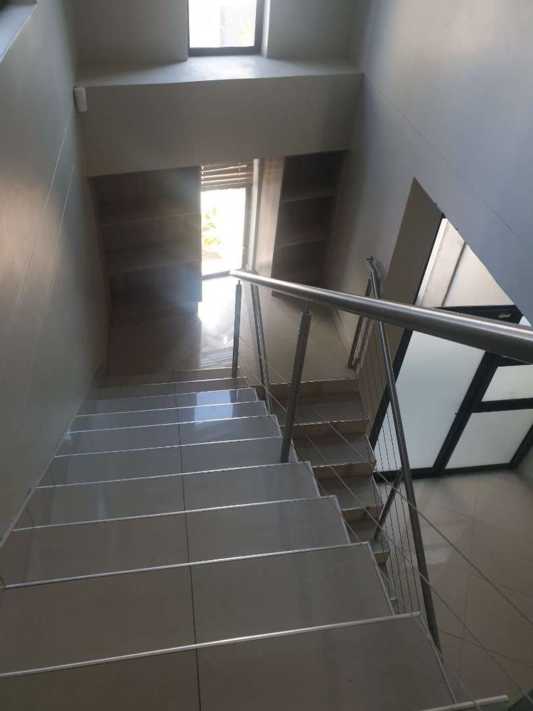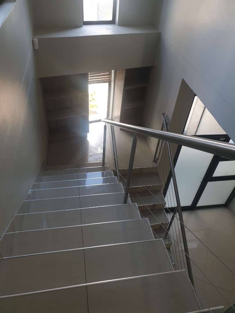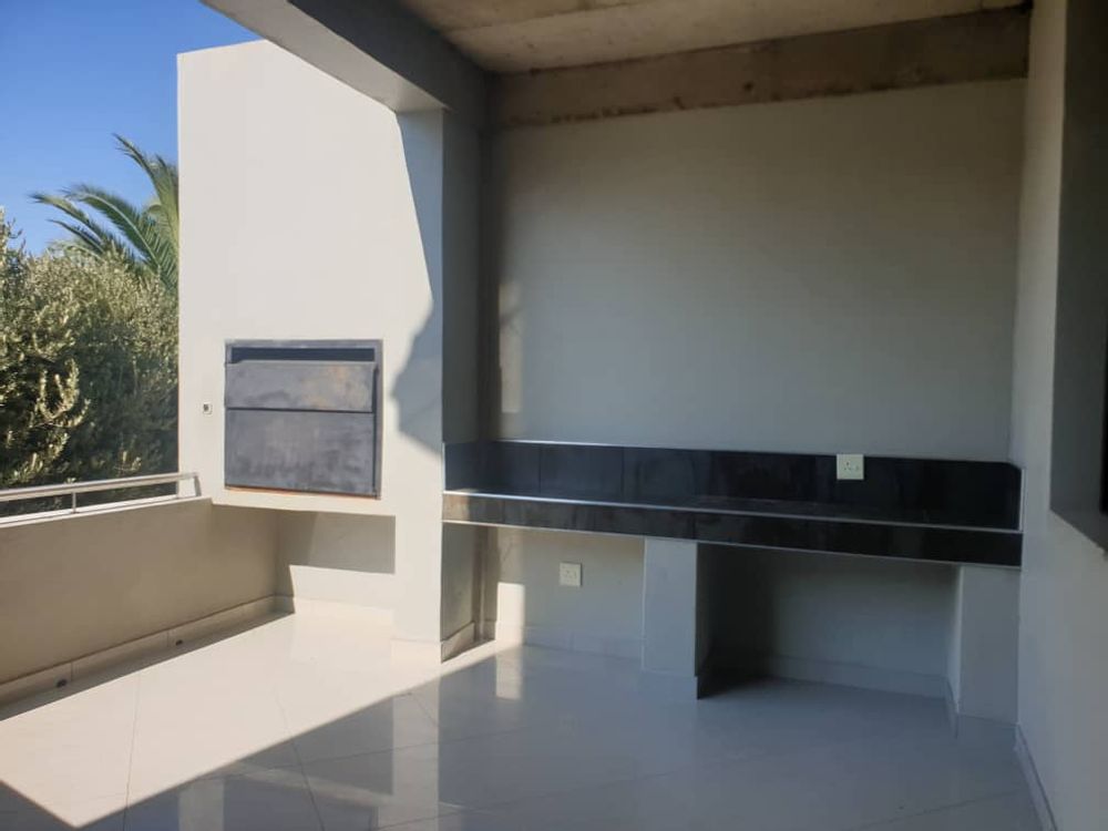 High Modern apartment to let. 2 Bathrooms and guest toilet with 3 bedrooms, one bathroom en-suite. Open plan kitchen/living area with fire place and spacious balcony with build in braai area. Basement parking x 2 per unit & Security. Excluding water & elec. Furnished available 22 000.00 per month (only two units available - one furnished and one unfurnished. Unfurnished immediately available, ALSO FOR SALE