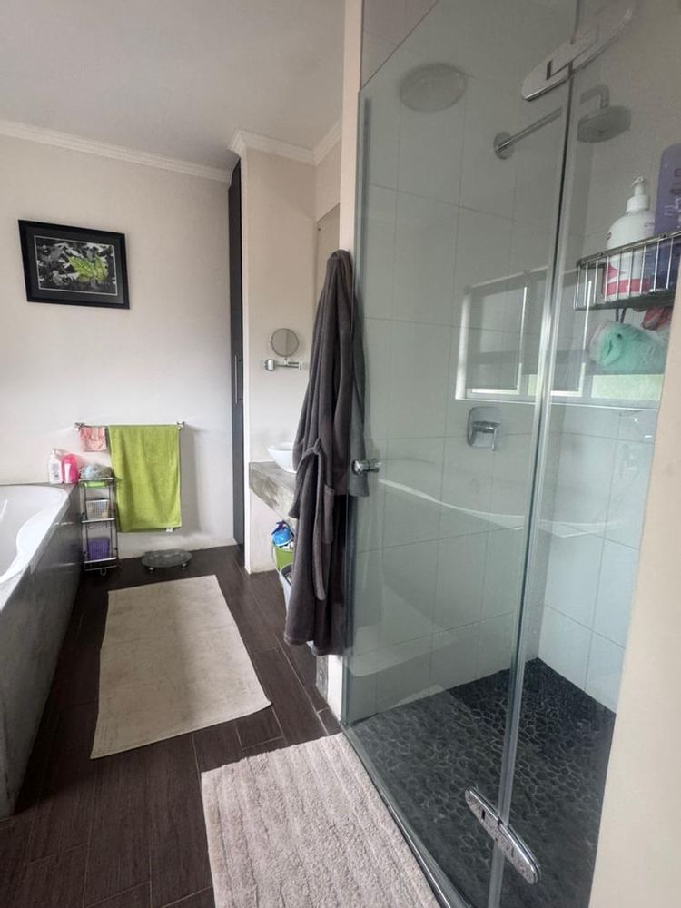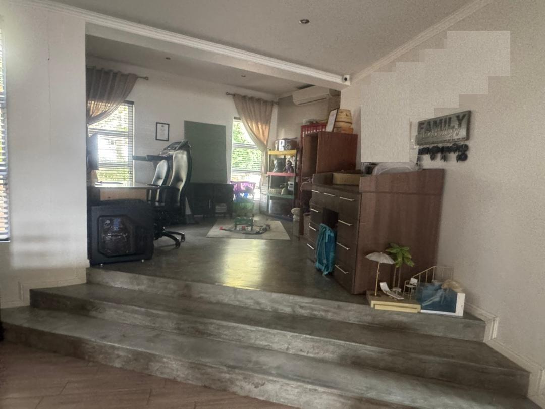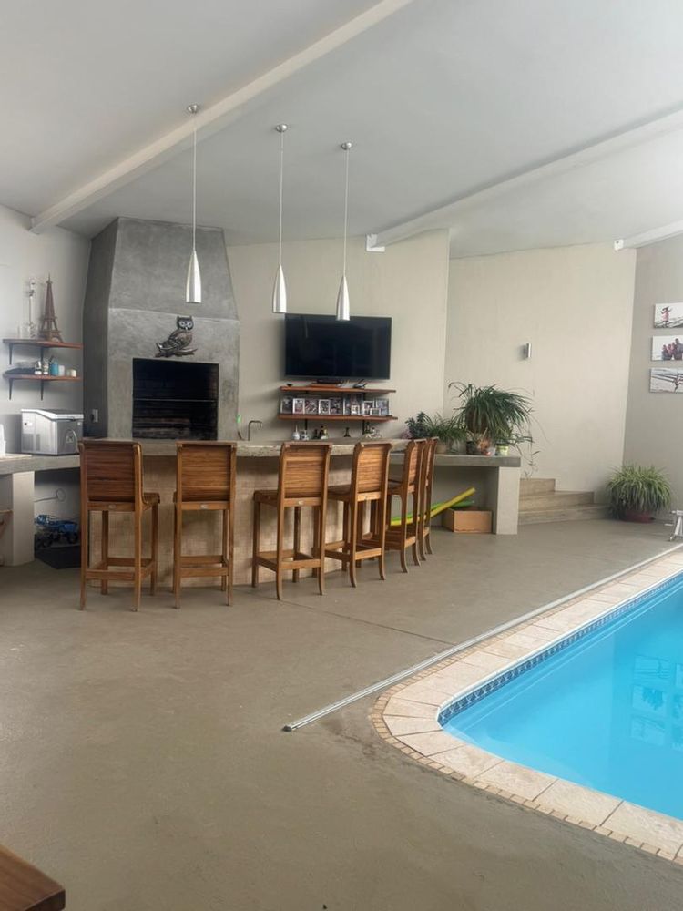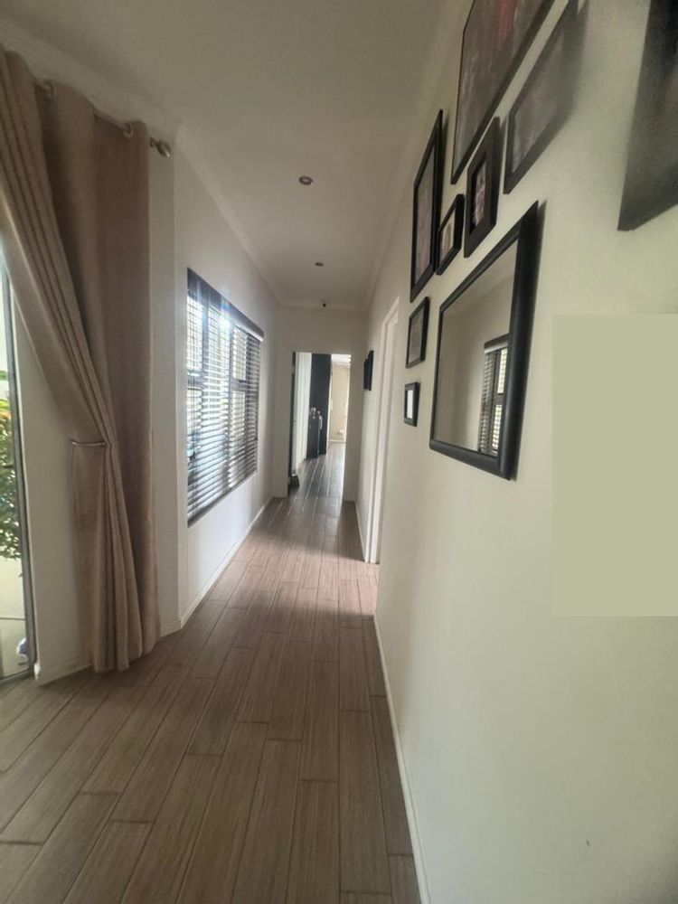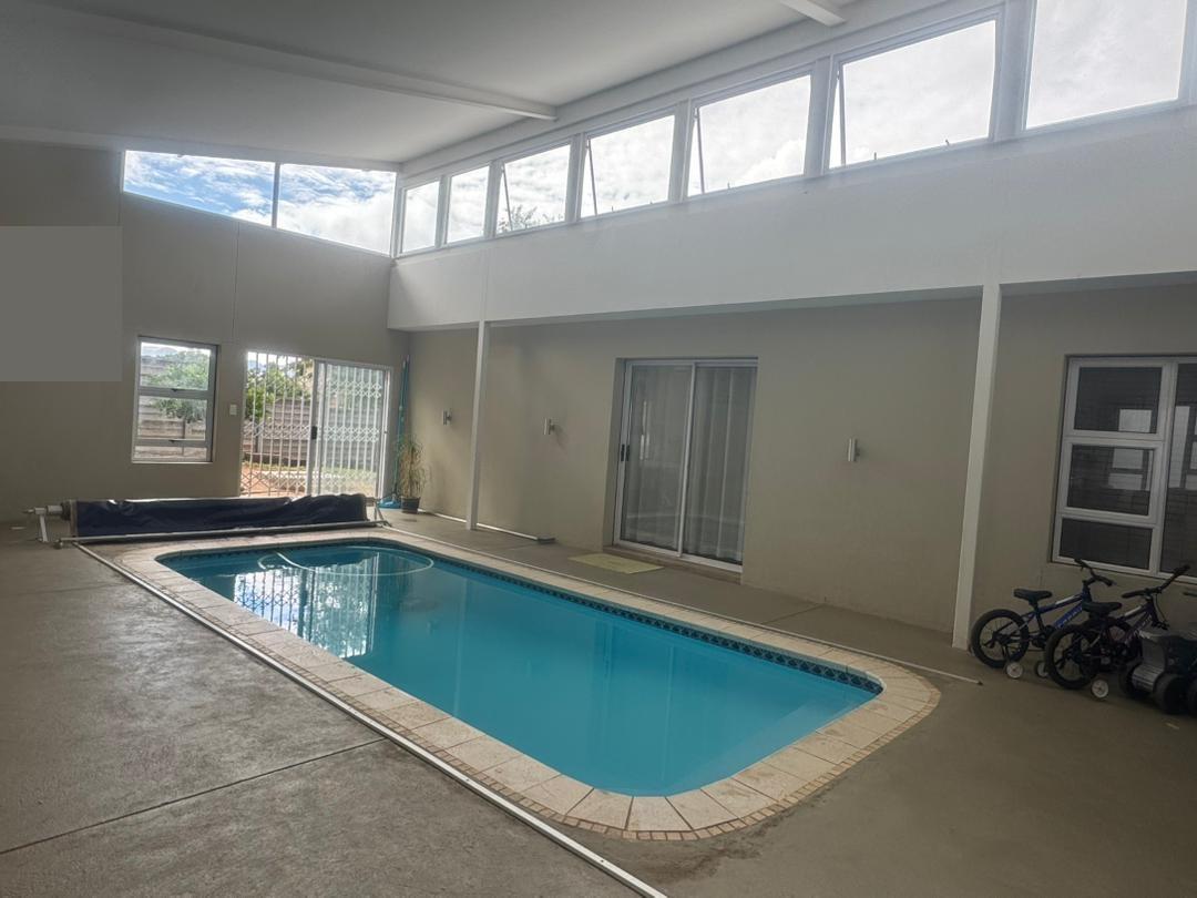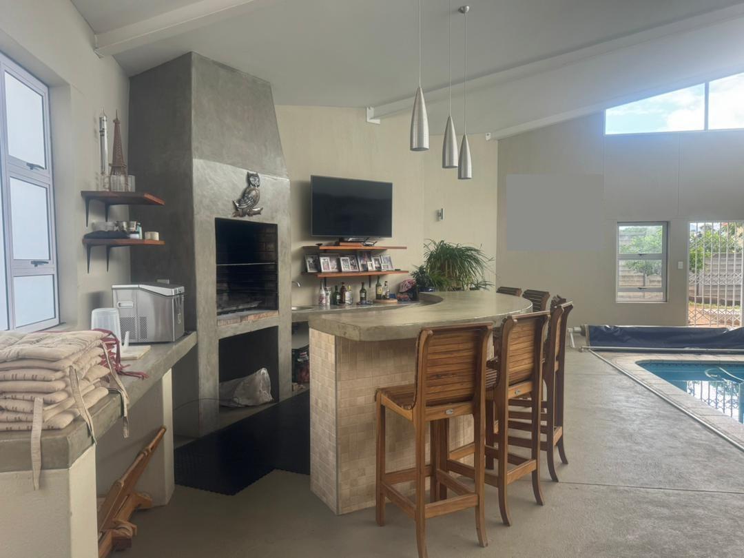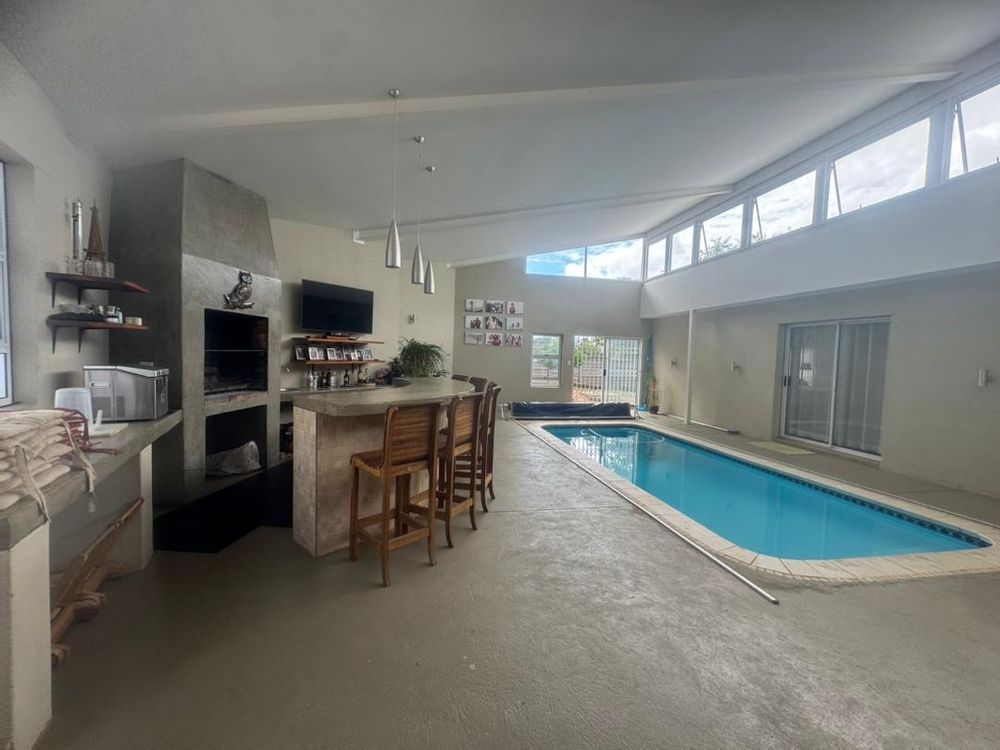 Open plan kitchen/dining/lounge or study area. Separate scullery, indoor braai swimming pool (heated) and dining area, 3 bedrooms with main bedroom ensuite bathroom. Total 3 bathrooms (one currently being used as TV room). Sgl garage with 2 x under roof parking area with additional visitor parking space.