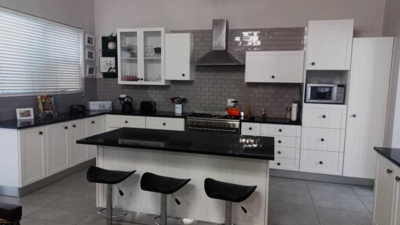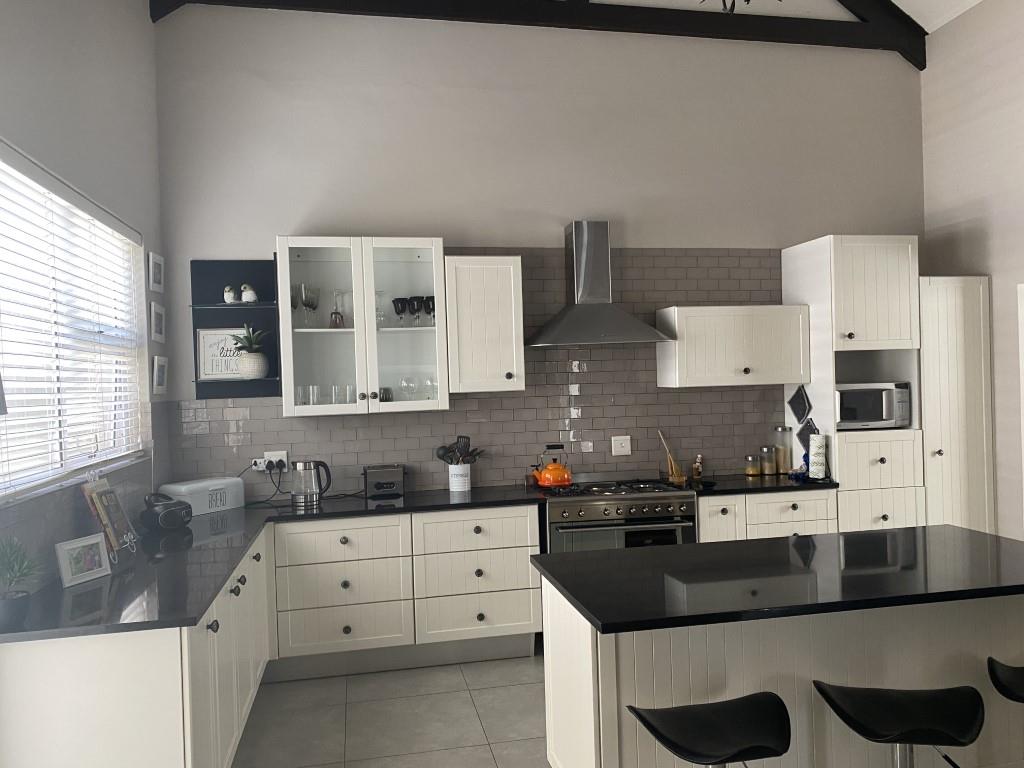 Modern and neat 3 bedroom house in Omeya Golf Estate. There are two bathrooms and an open plan living area with kitchen and separate scullery. The large, inviting veranda with build in bbq are closed off with beautiful louvre doors that leads to a small garden enclosed with a boundary wall.