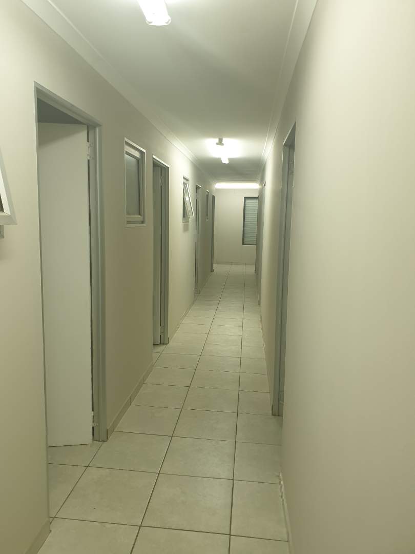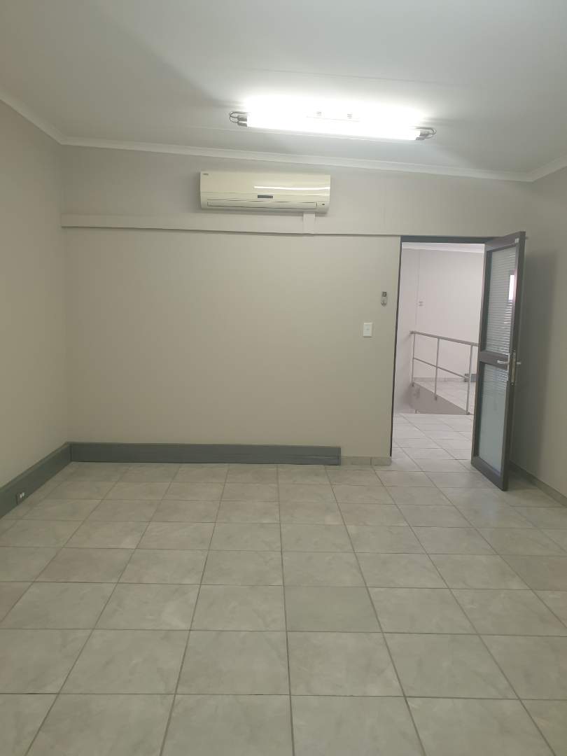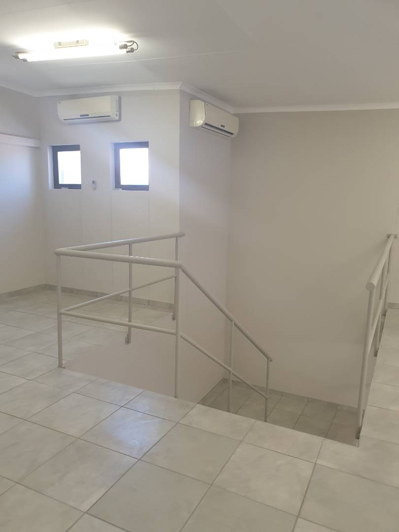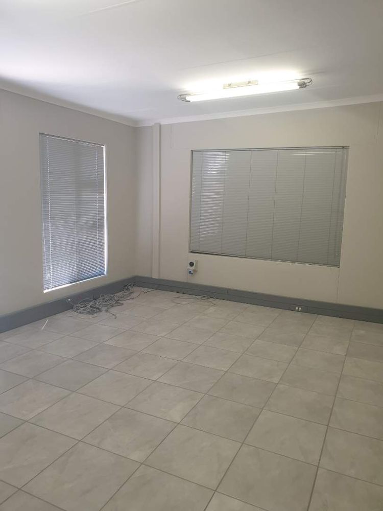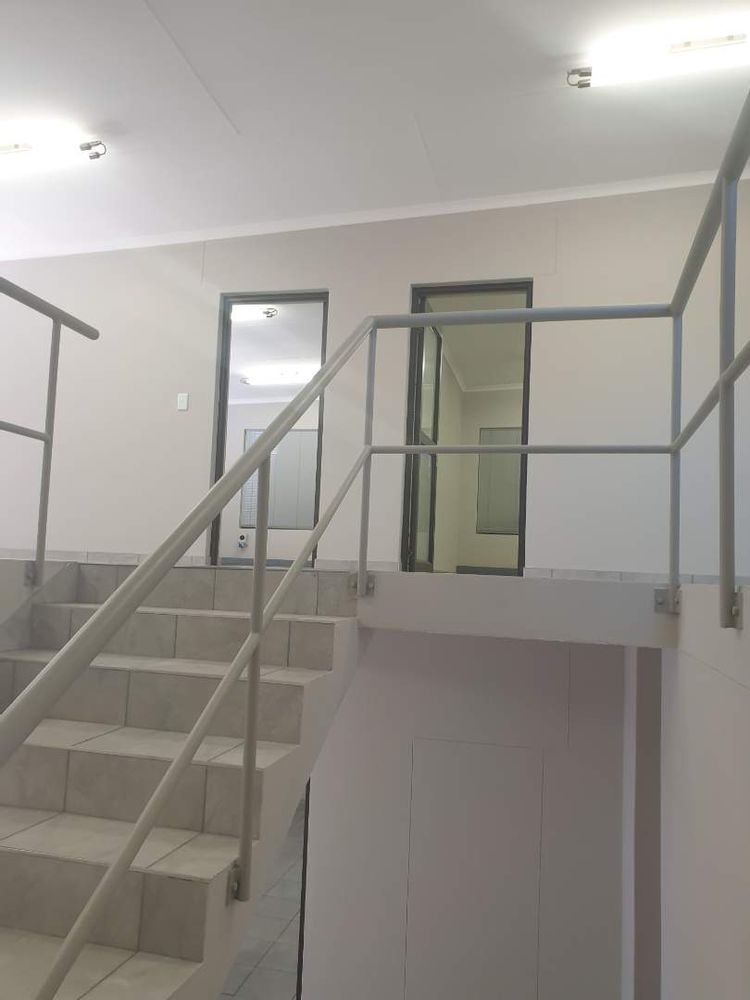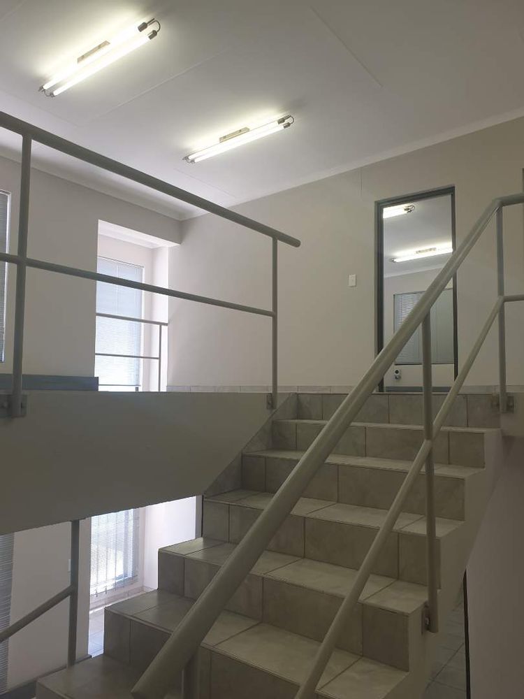 Double Volume Warehouse 450m2 and Offices 250m2 consisting of : Reception, Office adjacent to Warehouse, Open Area 450m2 Warehouse space with security booth, own staff ablution and showers, Top floor - 8 Offices with additional 2 Offices above reception area with own ablution. Warehouse & Offices fitted with water cooling system and other offices Air conditioners. Ample fenced in staff parking, very secure. Alarm & Elec Fencing. Tenants will be vetted by the owner. Excluding VAT, Water & Elec.