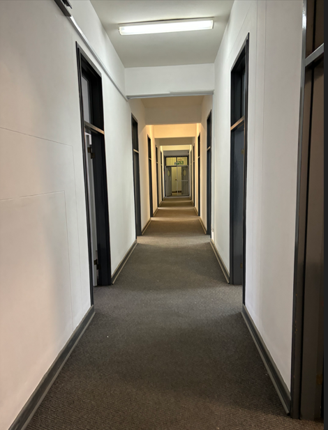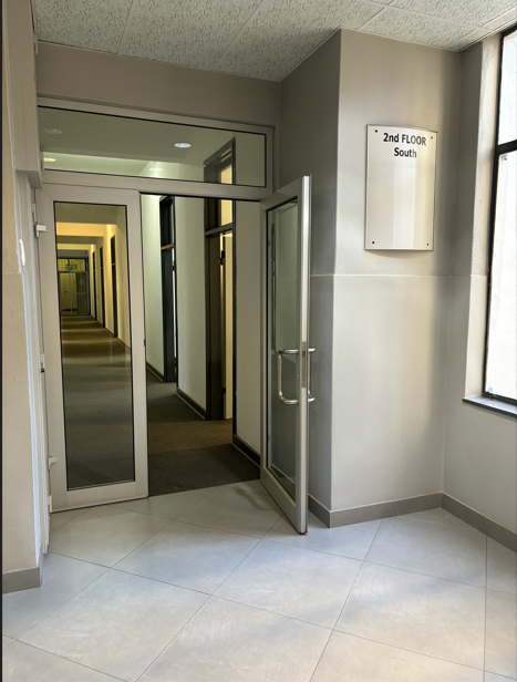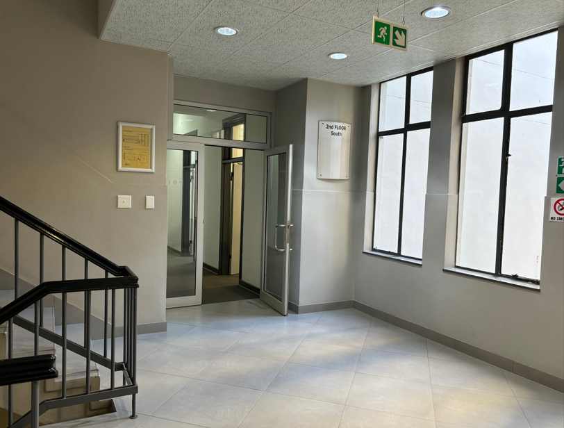 Reception, Security desk, 2 x Elevators, approximately 20-23 Offices with 2 x strong rooms (amount of offices floor dependent), ablution his/her and kitchen. Parking at another building, walking distance.