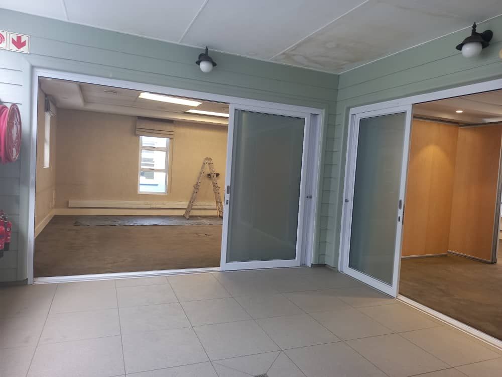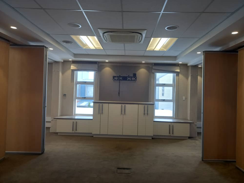 U shape offices interchangeable (various sliding door options). Not wheelchair friendly. Can be rented as venue for meetings / small conferences or offices. Electronic white boards and AV wiring available.